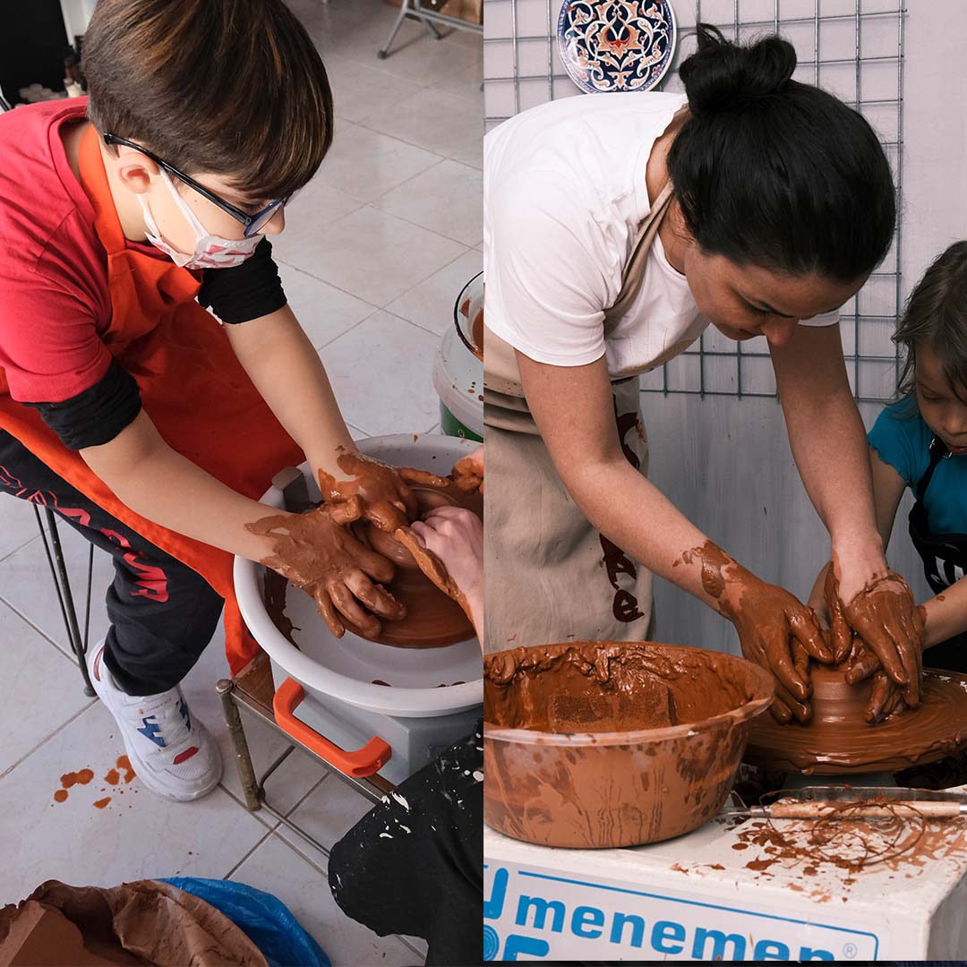 Çini ve Seramik sanatını aktarmak için; eğitim kurumlarında, firmalarda, sivil toplum örgütlerinde ve festivallerde atölye çalışmaları organize ediyoruz.
